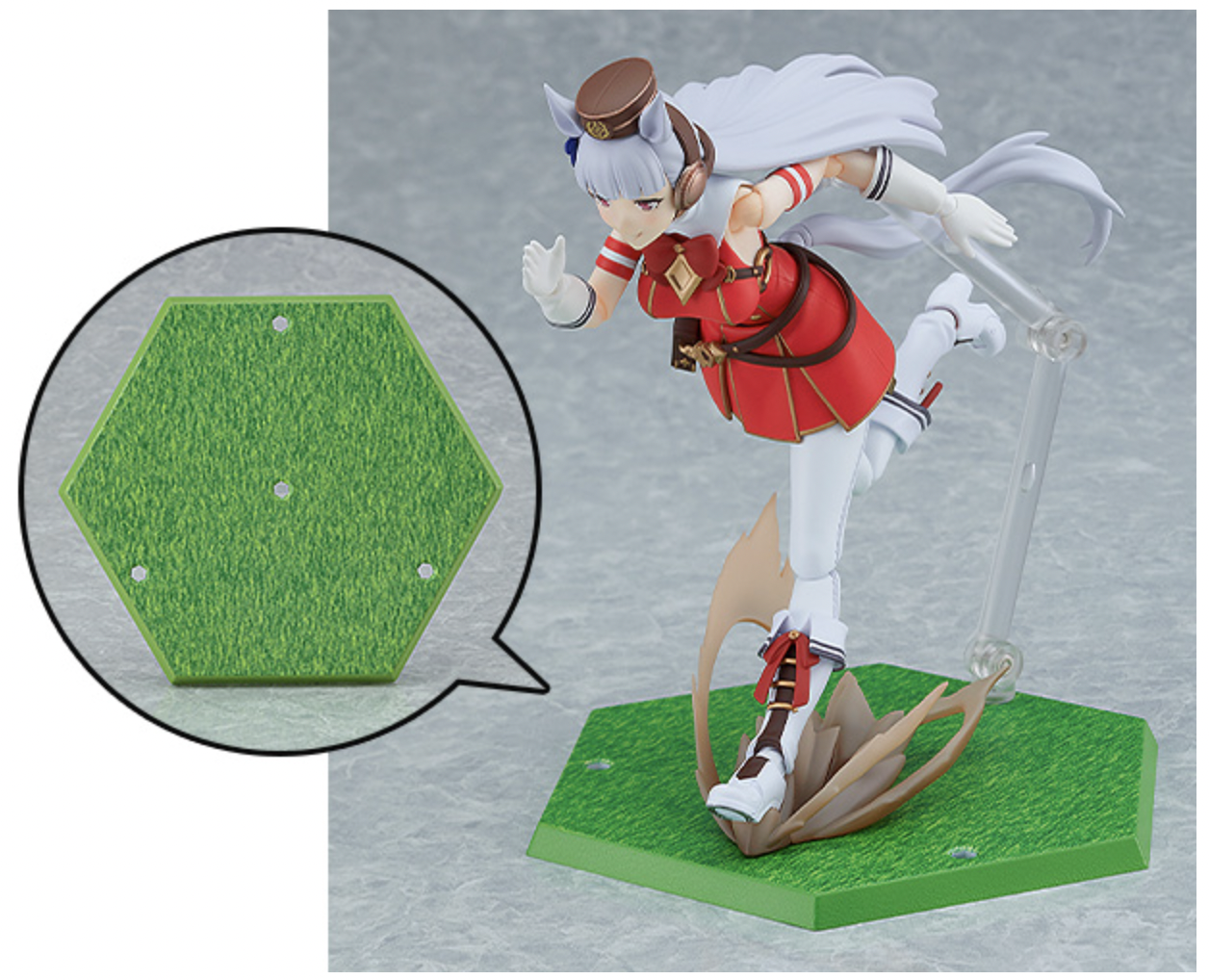 Here are the official images of the Gold Ship figma. If you buy direct through Good Smile Company, it comes with a turf-colored base that also appeared as a CyStore bonus item.